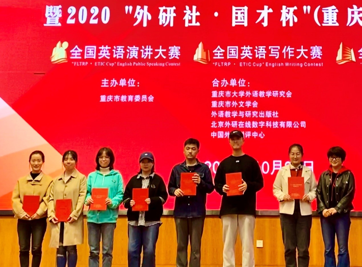 2020年10月31日,重庆市第三十届大学生英语演讲比赛暨2020“外研社·国才杯”全国英语阅读、写作、演讲大赛重庆市复赛在重庆交通大学举行。我校管理科学与房地产学院研究生周起闻以总成绩第一,软件学院本科生杨阳以总成绩第二的优异成绩双双进入演讲比赛全国总决赛。