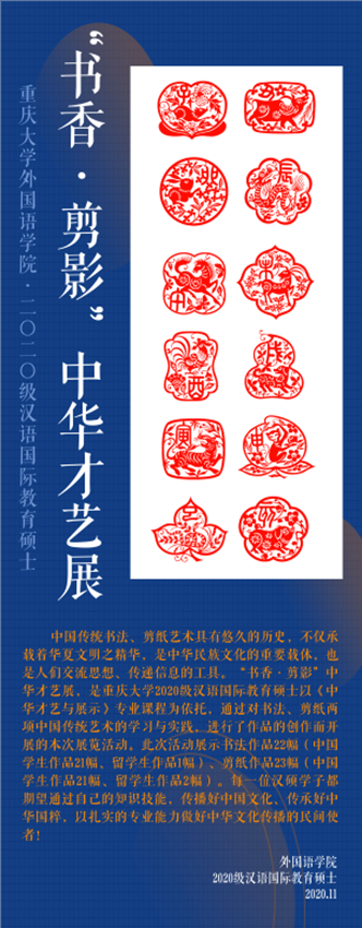 2020年11月2日至6日,2020级汉语国际教育硕士专业“书香·剪影”中华才艺展在小黄书