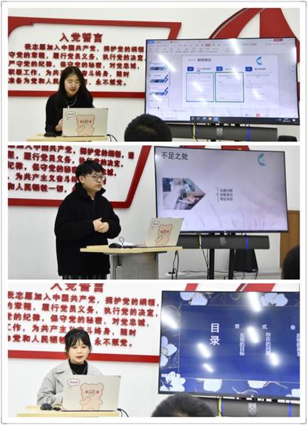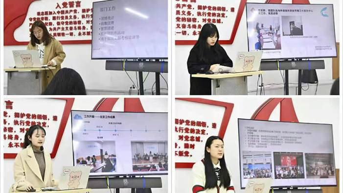 社团部部长郭颖菱展示了该部门成员上学期所做的各项现场布置、资源配给与社团协调工作。办公室主任张珂铭报告了办公室的信息整理与文件规范工作,提出解决部门人力资源不足的方案。实践部部长肖裕翠在汇报工作之外,还深情地分享了为前去参军的部门成员写信、留言的故事,她表示,作为部长应该关心成员们的心理状态。文体部部长周艳婷以时间轴的方式一一罗列上学期学院所举办的丰富多彩的文体活动,也借此回顾了自己在学生会工作的心路历程并坚信自己热爱这份坚持。宣传部部长宋诗雨用100篇推文、46篇新闻稿、25件宣传品等各类数据展示了上学期部门工作丰厚成果。学习部部长王川海用表格呈现了部门组织负责的文化沙龙等工作。组织部部长张艺萌重点汇报了团支部建设工作。各部长均表示经过一学期的锻炼与磨合,部门成员的团队精神、工作能力、责任意识得到很大强化,大家在学生工作中培养出浓浓的部门情谊。