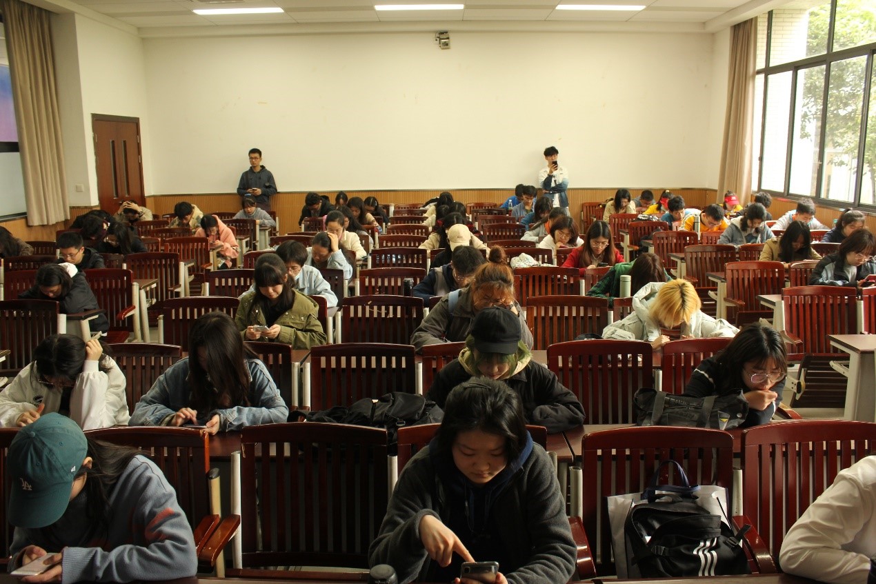 比赛题目涵盖单项、多项选择,单词拼写,词组搭配等多项题型,以大学英语四六级词汇为纲,全面考察同学们的词汇能力。大家排除外界影响,专注自我,认真答题。赛程过半,答完题目的同学安静地先行离开考场。考试正式结束后,同学们有序离开考场,圆满完成了本次词汇竞技之旅。