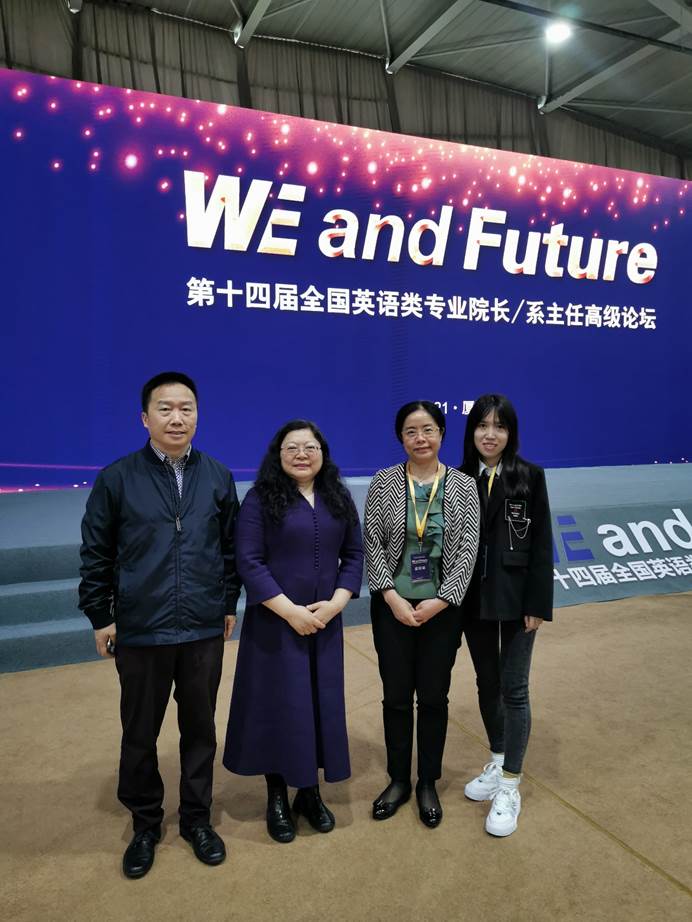 2021年4月16日,外语学院院长彭静教授、副院长范定洪、英语系主任毛凌滢教授、英语系奚茜博士赴厦门参加第十四届全国英语类专业/系主任高级论坛。该论坛由教育部高等学校外国语言文学类专业教学指导委员会、上海外国语大学和厦门大学主办,由上海外语教育出版社承办。