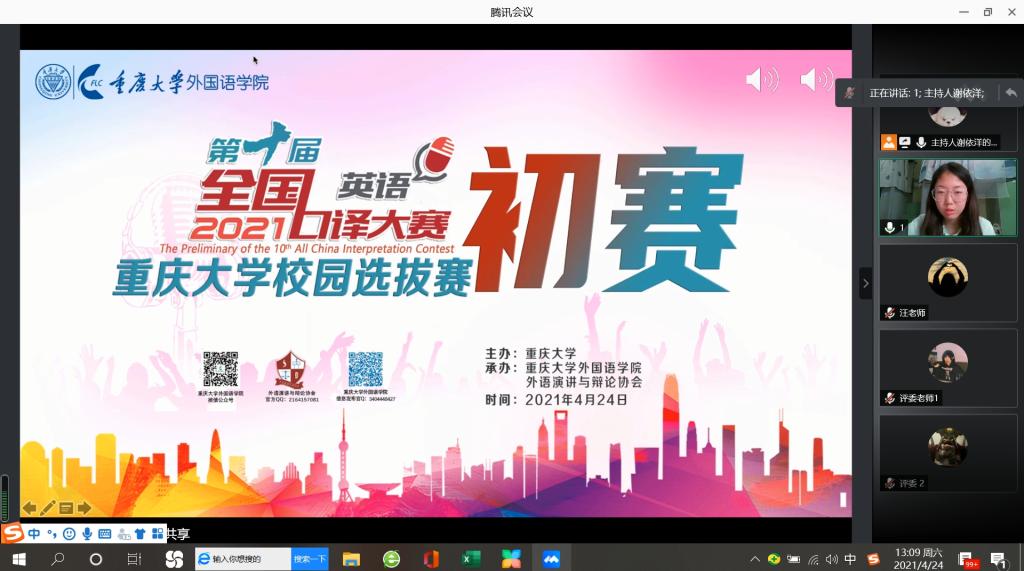 本次校选赛初赛于2021年4月24日14:00在 “腾讯会议”线上平台进行,决赛于2021年4月29日14:00在小黄书