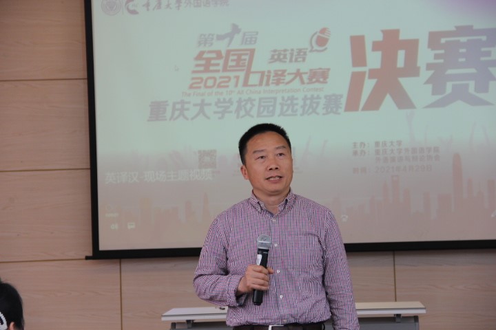 楼501举行。大赛设英译汉和汉译英两个环节,要求选手限时即场进行交替传译,实行淘汰制,初赛得分靠前的选手进入校选赛地面决赛。