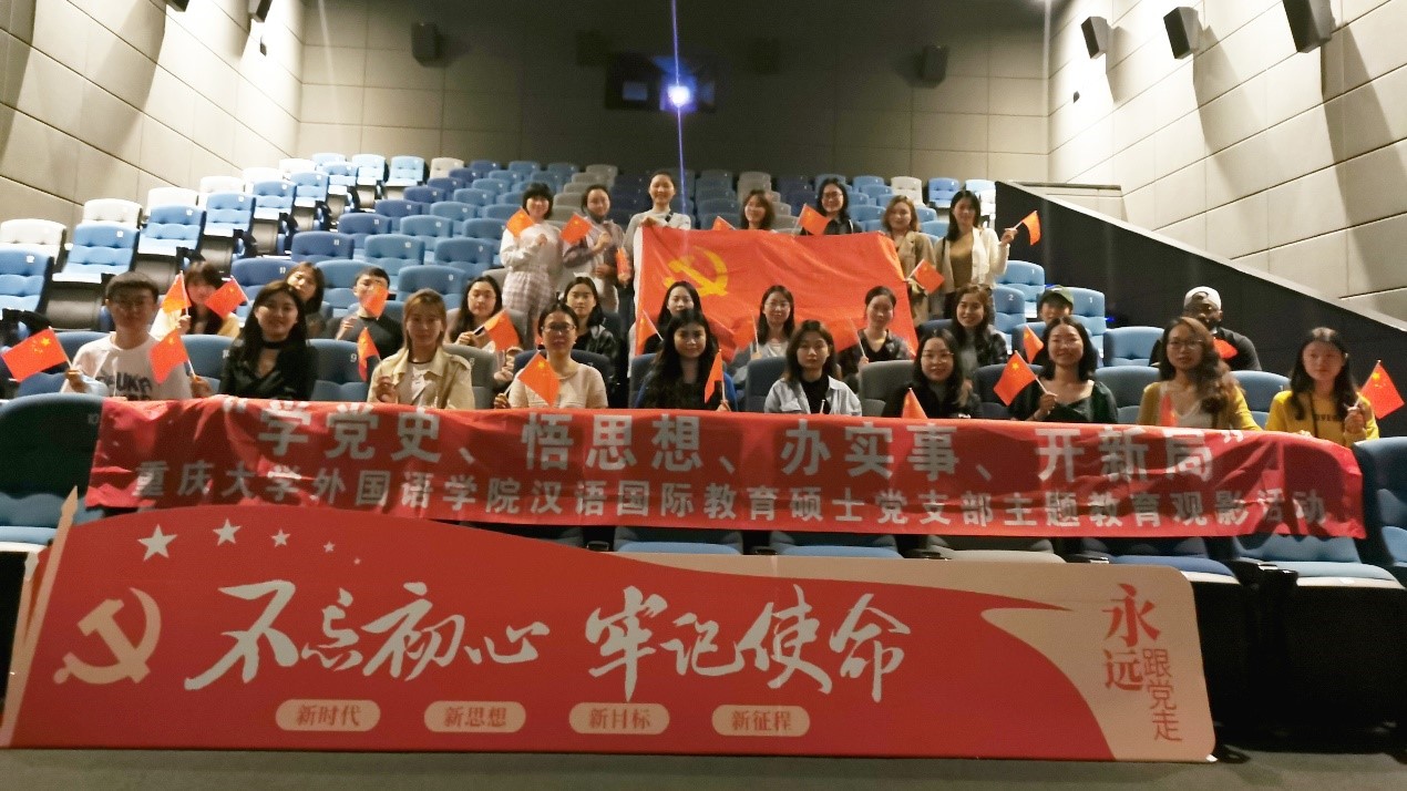 汉语国际教育硕士党支部于5月23日开展了“学党史、悟思想、办实事、开新局”主题教育观影活动,组织支部党员前往影院观看影片《悬崖之上》并交流心得体会。汉硕专业入党积极分子和多哥留学生周源同学也参加了此次活动。