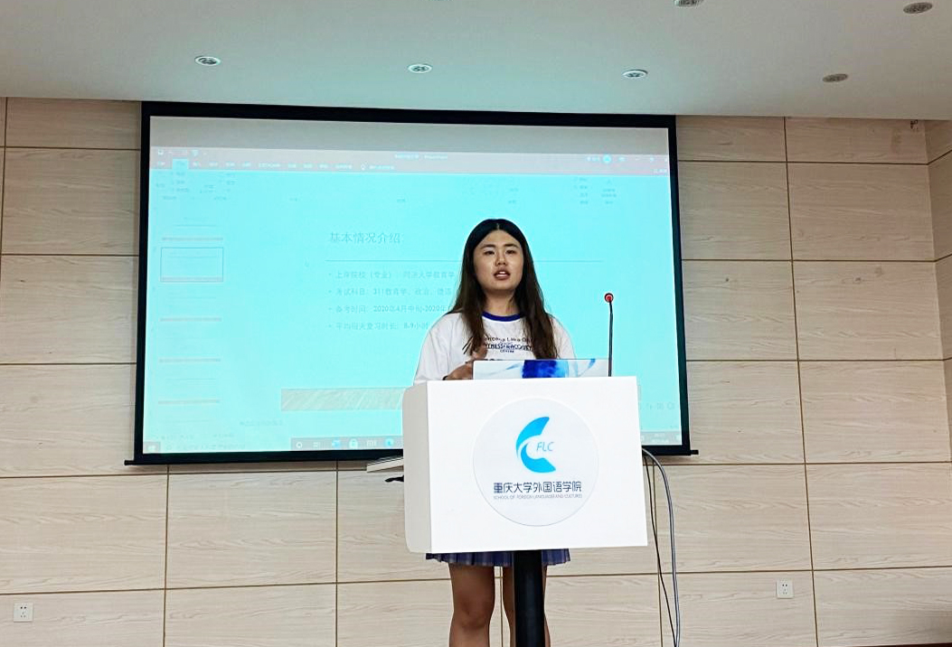 最后是德语专业的殷婧冉同学,她跨专业考研至同济大学的教育学。她主要从学校实力、区位优势、专业排名、就业前景、报考难度、考研名声和参考资料七个方面为我们分析了如何选择合适的学校与专业。在复习安排方面,她建议定好切实的复习目标,做好合理的复习安排,并强调选择高效的背书方法。在考试内容方面,她主要强调了做真题的重要性,建议同学们尽早接触考研真题,多总结答题规律,严格控制做题时间。此外,她还提醒同学们明确考研过程中的各个重大时间点,避免因遗忘时间错失考研机会。