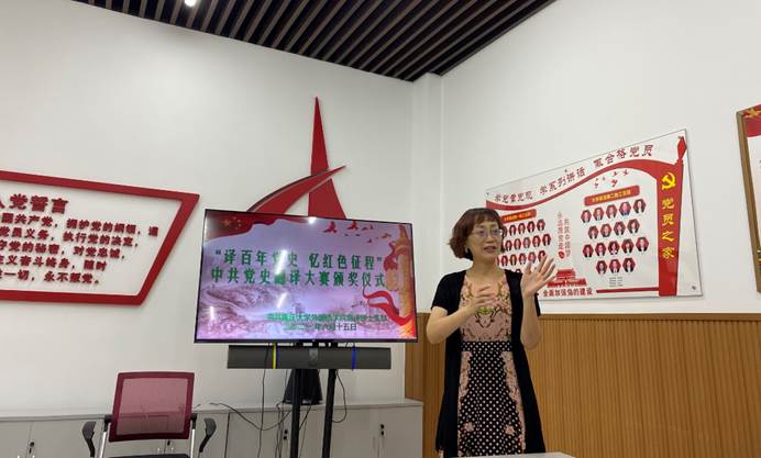 颁奖仪式结束后,翻译硕士支部书记游振声老师以“中国共产党百年伟大贡献”为题为本支部全体党员同志上了一堂专题党课。