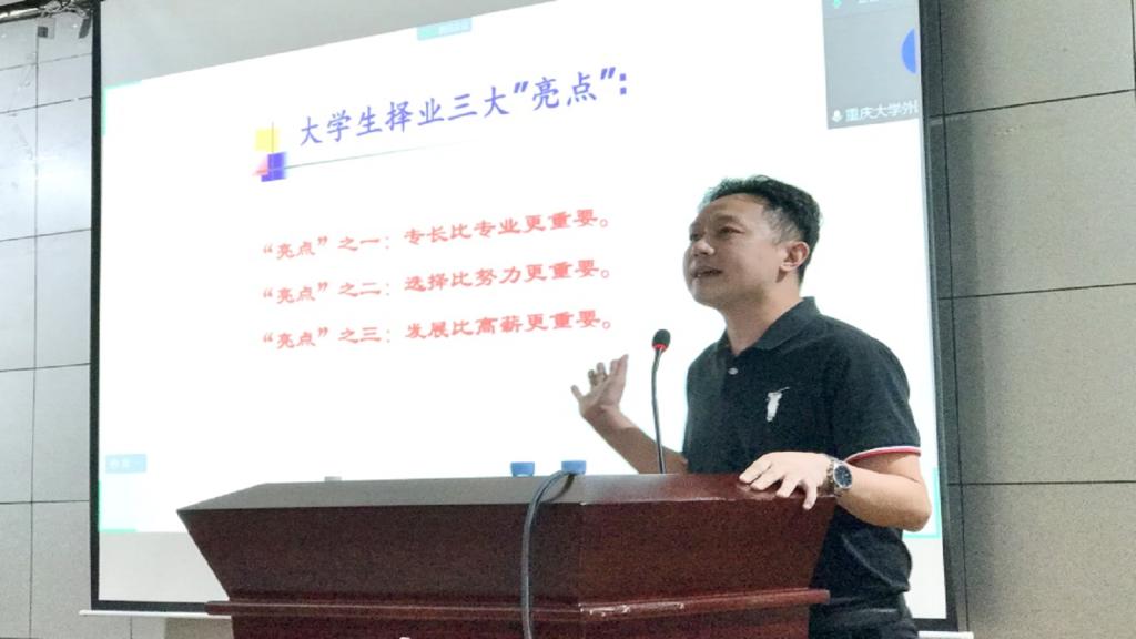 就业中心向章婷,研究生辅导员覃梦秋,特邀专家寿军、王麒凯,及小黄书