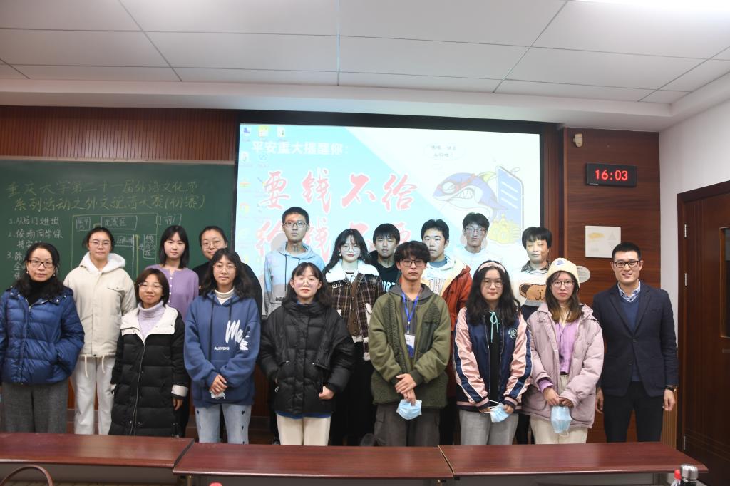 此次比赛邀请到了黄萍、卢敏、吴亚、甘霞、常鹏云、钟原越、余泽梅、王旭、黄聆等9位老师担任英语专业组评委,杜瑾、朱灵峰、向朝红等3位老师担任公共外语组评委;周璞、乡原章、郭萌、潘玲等4位老师担任日德组评委。老师们以发音标准、情景生动程度、内容充实程度、时间把握为标准,为每组参赛选手打分。