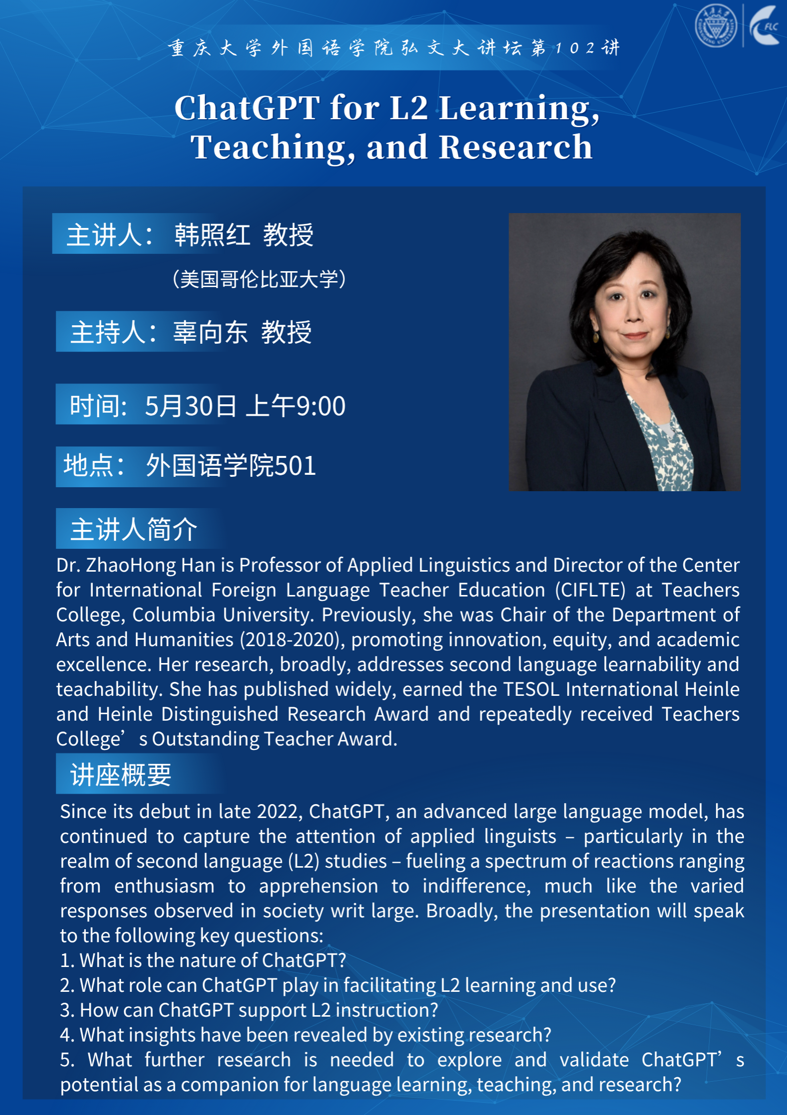 讲座|ChatGPT for L2 Learning, Teaching, and Research