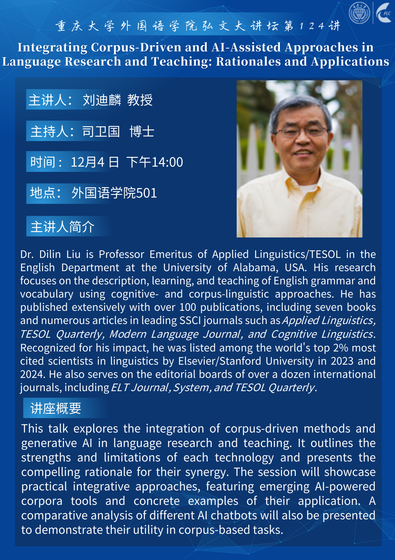 讲座|Integrating Corpus-Driven and Ai-Assisted Approaches in Language Research and Teaching: Rationales and Applications