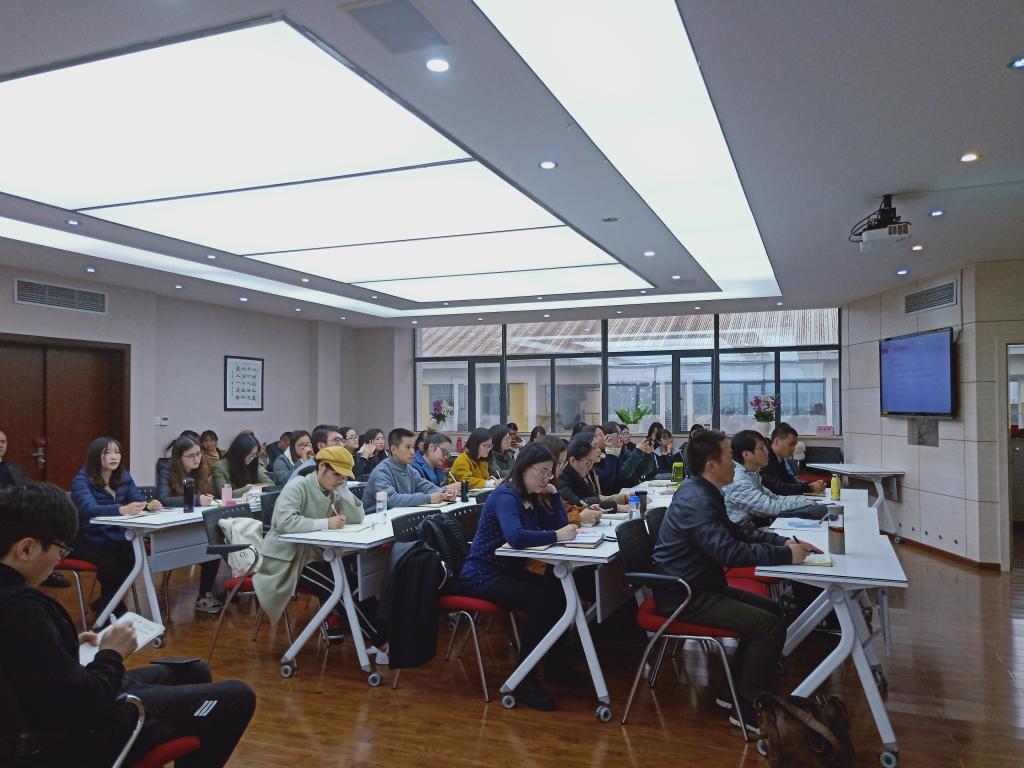 副院长范定洪教授致欢迎辞,翻译方向的老师们和2017、2018级全体翻译硕士参加了此次讲座。