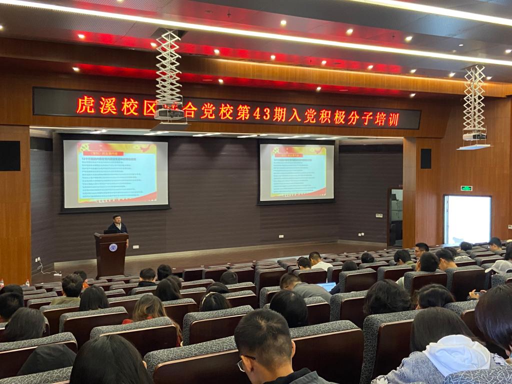为深入学习贯彻习近平新时代中国特色社会主义思想,切实增强入党积极分子培训的系统性和规范性,进一步提高入党积极分子培训的质量和水平,2021年10月21日下午,虎溪校区联合党校第43期入党积极分子培训课堂教学第二讲在理科楼LA101顺利举行,来自虎溪党工委、化学化工学院党委、物理学院党委、数学与统计学院党委、小黄书