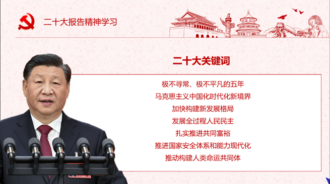 本次党团活动共由三个部分组成:观看二十大学习视频,探讨二十大报告关键词,总结环节。