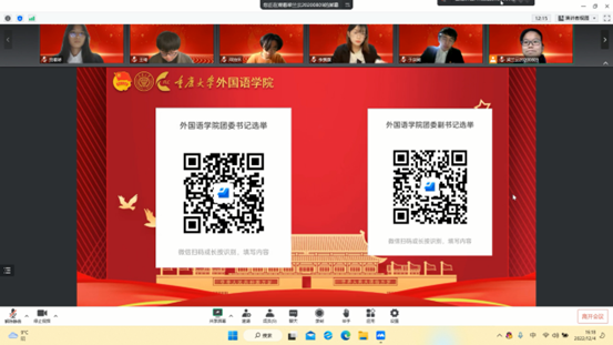 会议议程第一项,根据《中国共产主义青年团章程》和《中国共产主义青年团地方组织选举工作条例》,以及团内各项规定。会议通过无记名投票方式全票通过并产生了新一届委员会书记汪俣婧,副书记李紫薇、梁兰云。