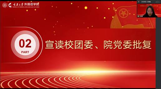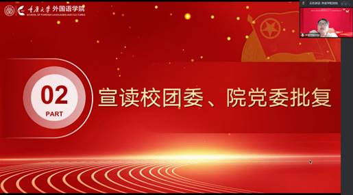 大会在庄严肃穆的国歌声中拉开帷幕。紧接着,院党委委员、党委正科级组织员刘培老师与院团委书记汪俣婧老师分别宣读院党委批复、校团委批复。