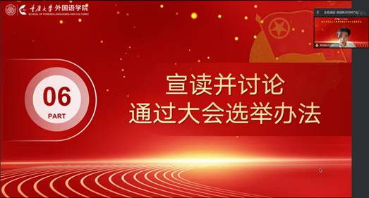 大会主席团成员邓沧怀宣读大会选举办法,介绍了各类候选人的酝酿过程、计投票方式、选举流程。