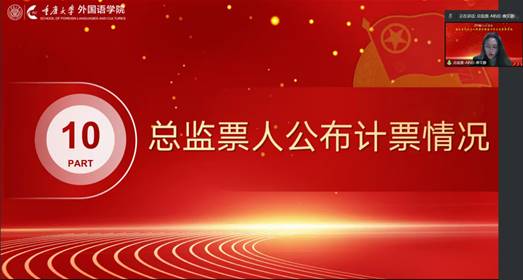 经监票人、计票人的协作统票,总监票人审核验票,投票结果出炉。总监票人廖文静公布计票结果,主持人宣布选举结果。