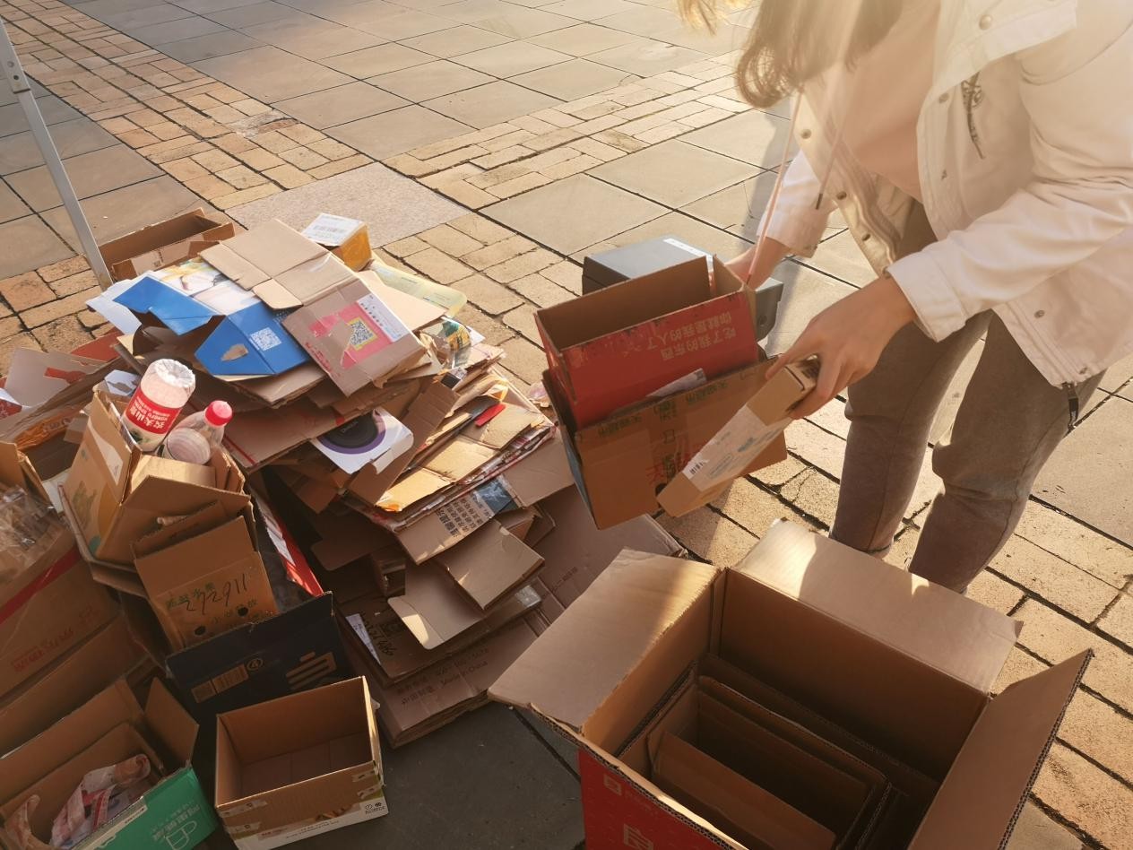 志愿者凌小说:“这次活动让我感受到,节约资源其实存在于我们生活中的方方面面。这些平时被我们随意丢弃的纸箱回收后也会有很大的用处。保护环境不应是一句口头空话,我们应当从身边小事做起,从点滴做起,养成回收利用的好习惯,并用实际行动引导更多身边的人一起参与进来。希望我们今后能多多开展此类环保活动,吸引更多同学参与其中,共同营造出重大人人爱环保的良好氛围。”