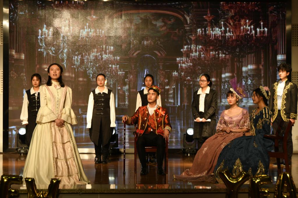英语系副主任余泽梅老师进行第一轮抽奖后,朱思成等两位同学的B-Box表演《fire for you》燃爆全场。绚烂的灯光配上变幻多样的口技,令人啧啧称奇。由马晓阳等同学准备的英语配音《灰姑娘+指环王》和郑诗音等同学带来的德语配音《银行抢劫》不仅语音语调标准,还注入丰富的情感,博得了满堂喝彩。刘晓云等同学的外文短剧大赛冠军作品《李尔王》把每个人物都刻画的栩栩如生。流畅的英语表达、华丽的道具服装和富有张力的表演成功再现了经典。王咨霈同学的钢琴独奏曲《爱乐之城》用轻松跳跃的节奏,时而俏皮时而抒情的演奏使听众们渐入佳境,感受到电影中的浪漫悸动,彰显了音乐的独特魅力。