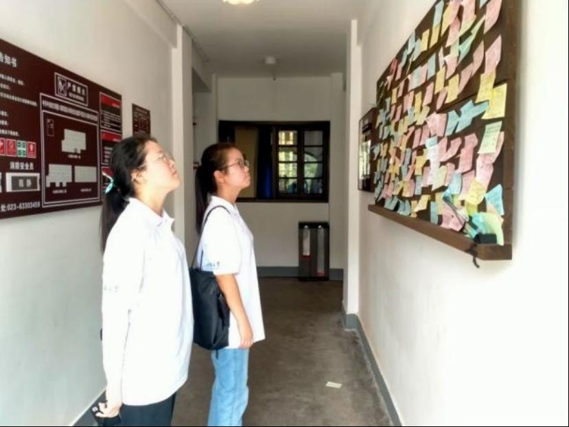 下午2点,实践团抵达八路军重庆办事处旧址,红岩村这片红色的土地是革命的象征,而八路军办事处旧址,为中共中央南方局的存在提供了掩护,为党的决策中明智举措。八路军驻重庆办事处大楼是一幢外看二层、实际三层的深灰色大楼。实践团参观了这一旧址内的文物和图片,看到了模拟的办公场景,并在观众留言处驻足,留下了内心的所思所想。旧址展出了南方局、办事处墙报。当时八路军经常举办墙报,这是南京局和办事处同志们加强理论学习、提高文化修养、交流学习心得的重要方式。墙报稿件丰富多彩,既有时评理论、学习心得,也有诗歌散文、摄影作品等等。在一路参观中,实践团先后看到了邓颖超致信周公馆房东的故事;他山之助,国模诗稿的原篇;实业救国的历史人物和事迹。在参观完八路军重庆办事处旧址,实践团实践团成员观众留言处驻足,看到了来自不同职业、不同年龄人士留下的真挚感受和对党的祝福。一张张便利贴重叠的背后,一份份爱国心交织。