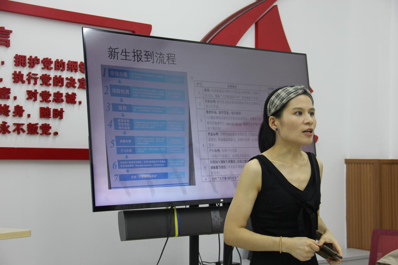 迎新工作说明会暨志愿者培训会。2021级辅导员张茹老师、小黄书