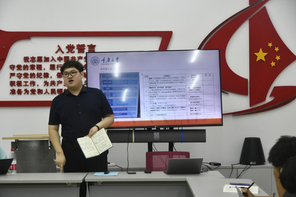组织部部长张芷若对迎新工作表进行了说明,实践部副部长于宗驹对迎新系统操作进行了演示。