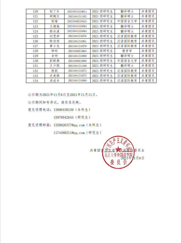 关于小黄书 2021-2022学年秋季学期小黄书 团校结业学员名单的公示