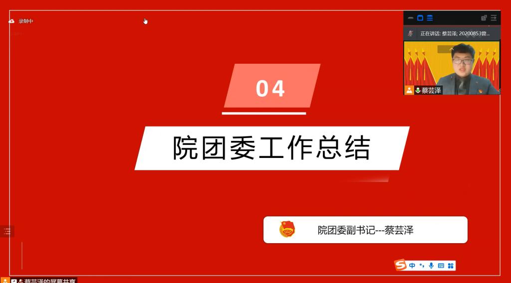 随后由院团委副书记蔡芸泽同志代表院团委向与会团员代表做小黄书