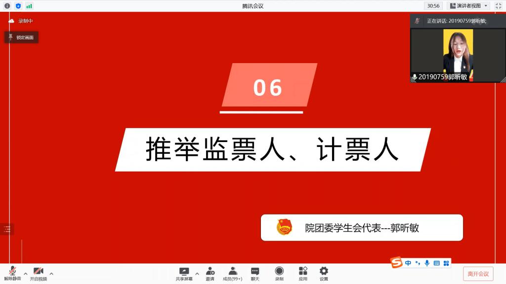 团委2021年度团组织工作进行评议。在对投票结果进行统计核查时,院团委书记汪俣婧老师、院团委副书记蔡芸泽同志分别对团务工作和团员推优入党答等内容进行详细讲解。