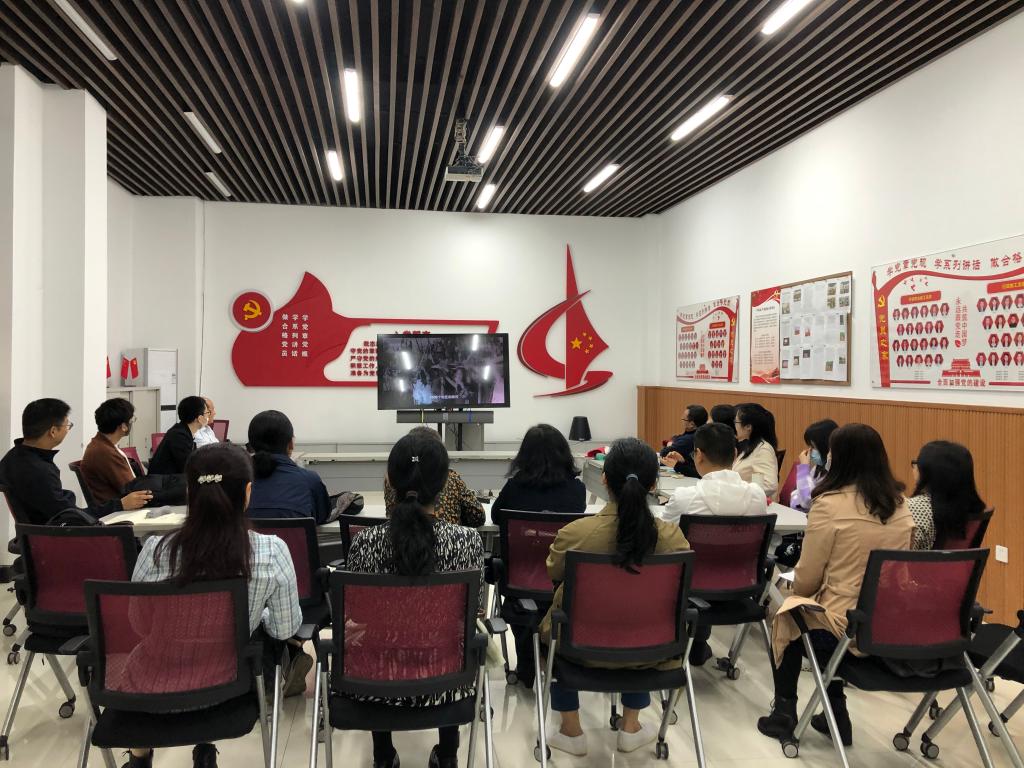 楼105会议室开展了主题党日活动,支部党员共同观看了《美术经典中的党史》中《开国大典》和《地道战》两集节目。该系列共有一百多集,由中央广播电视总台联合中国国家博物馆、中央美术学院等部门,为献礼建党百年特别制作。外语专业教工支部全体党员参加了这一次的党日活动,学习活动由支部委员李良炎老师主持。