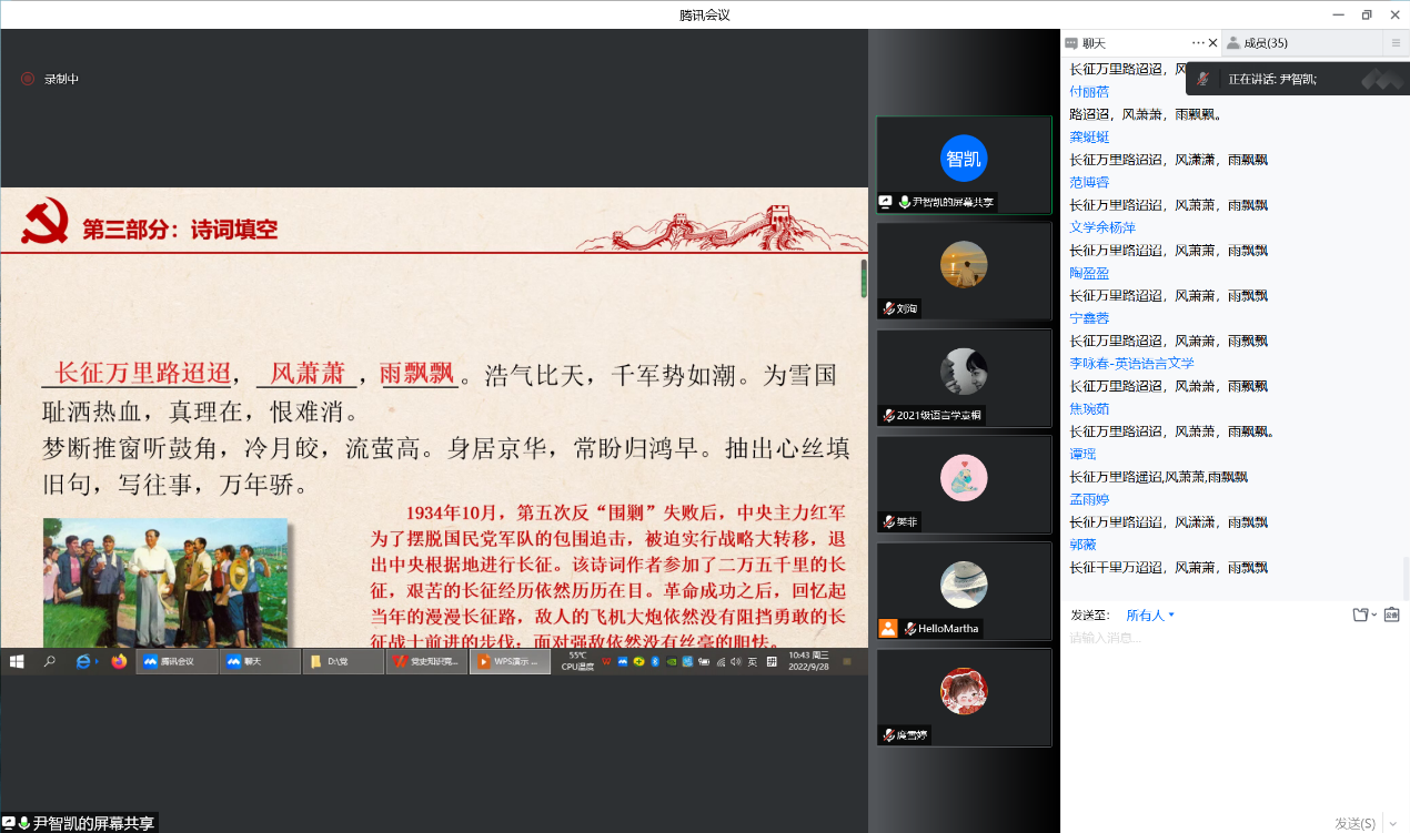 学术研究生第二党支部举办了在线“喜迎二十大,永远跟党走”党史知识竞赛。本次竞赛活动不仅得到支部党员同志的积极响应,还有14位入党积极分子参与其中,比赛过程精彩纷呈,气氛热烈,各位选手学习党史的热情充分迸发。