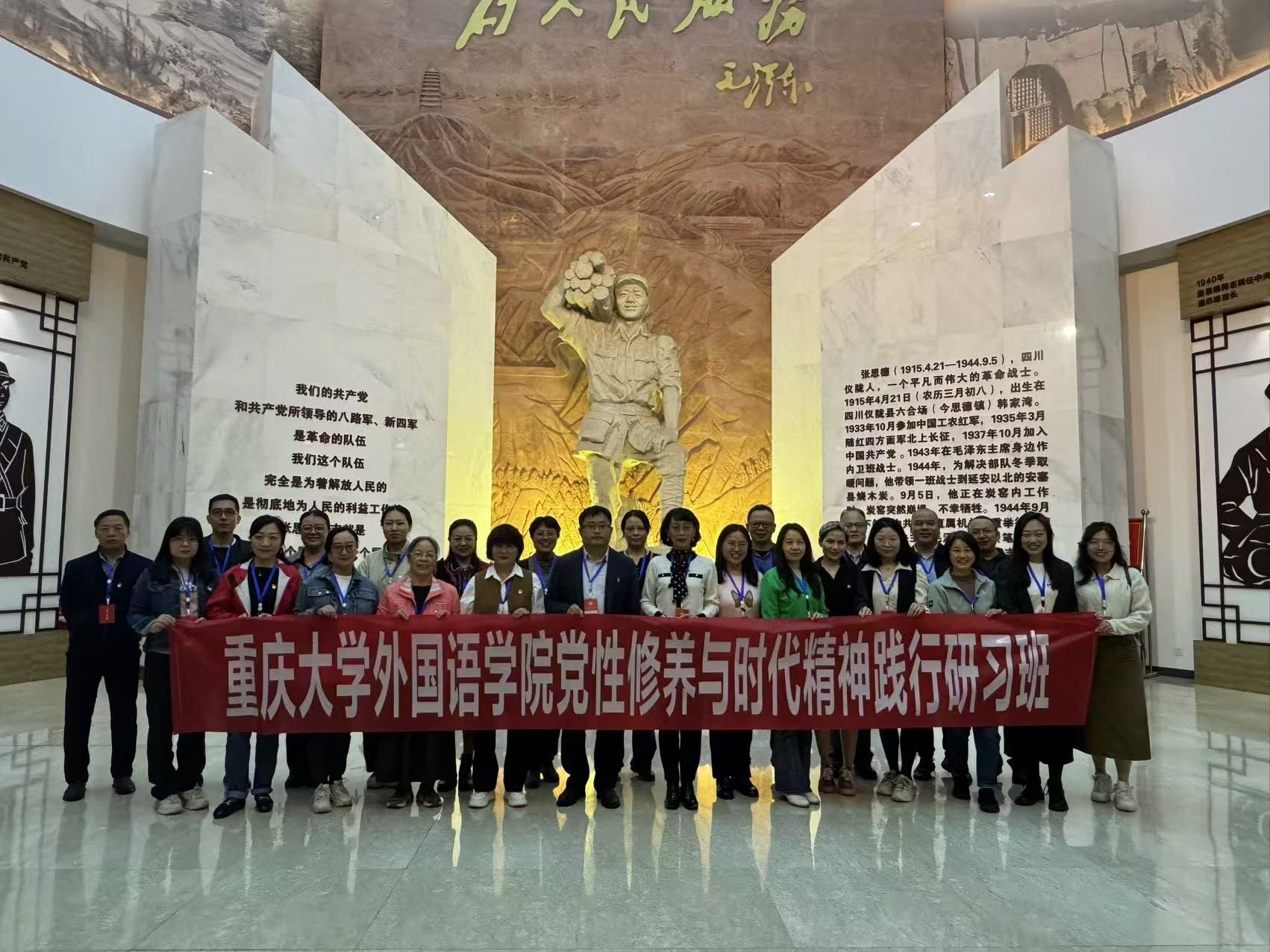 干部队伍和党务工作队伍党性修养和政治理论素养,牢固树立宗旨意识,牢记初心使命,推动学院党建工作和各项事业发展更上新台阶,2024年10月18日至20日,学院在四川张思德干部学院举办了主题为“党性修养与时代精神践行”的研习班。此次培训由学院党委书记欧玲带队,莫启扬院长、魏世平副书记、李小辉副院长、杨小虎副院长,党委委员,纪委委员,各教工支部书记及支委委员,各学生支部书记(教师)一行26人参加了培训。培训内容丰富,包括专题教学、分组研讨、现场教学、敬意教学等环节。
