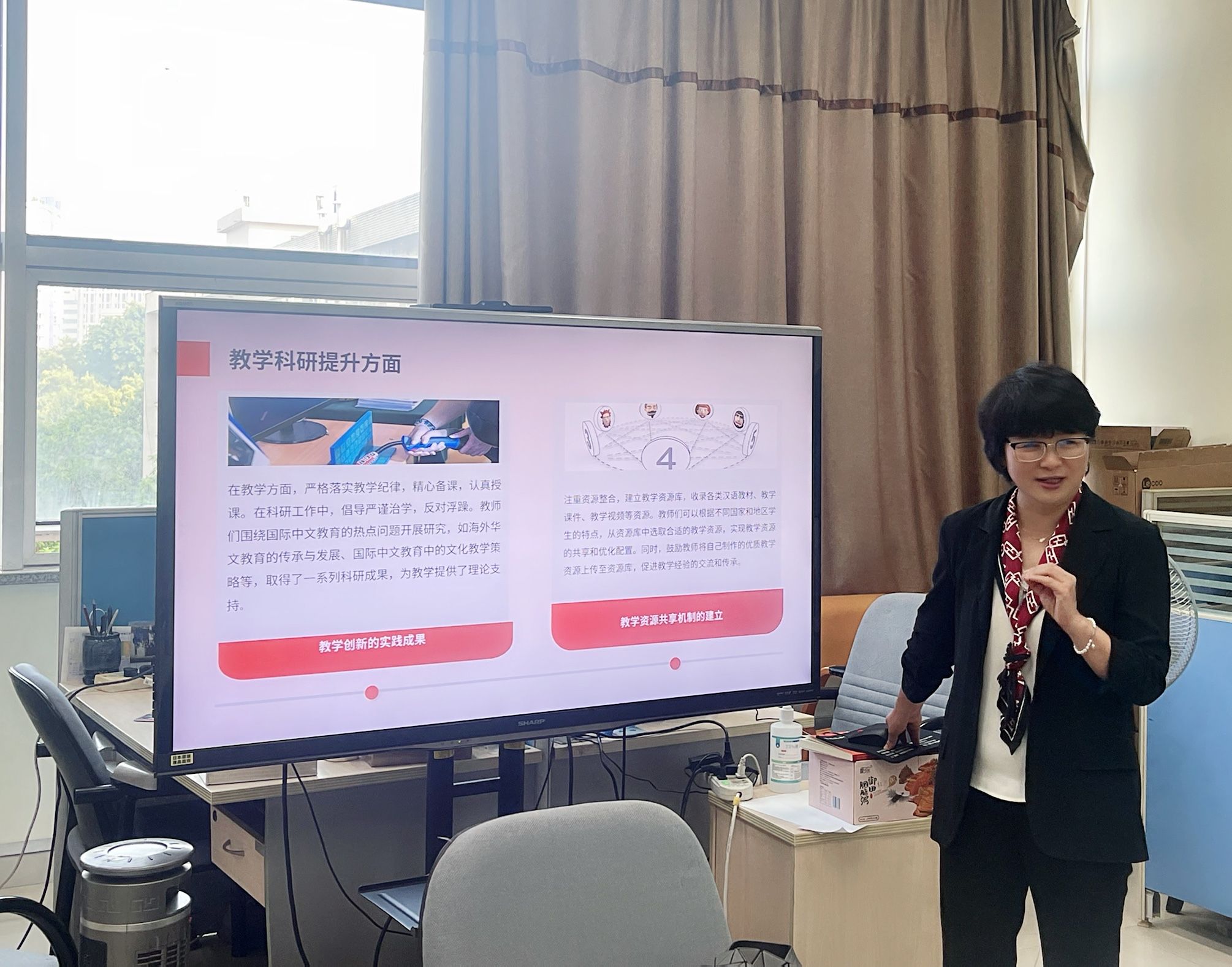 2025年5月20日,国际中文教育教工支部开展“加强党的作风建设”专题学习,学院党委书记李小辉以《作风建设在路上,助力国际中文教育发展》为主题,为支部全体党员讲授主题党课。
