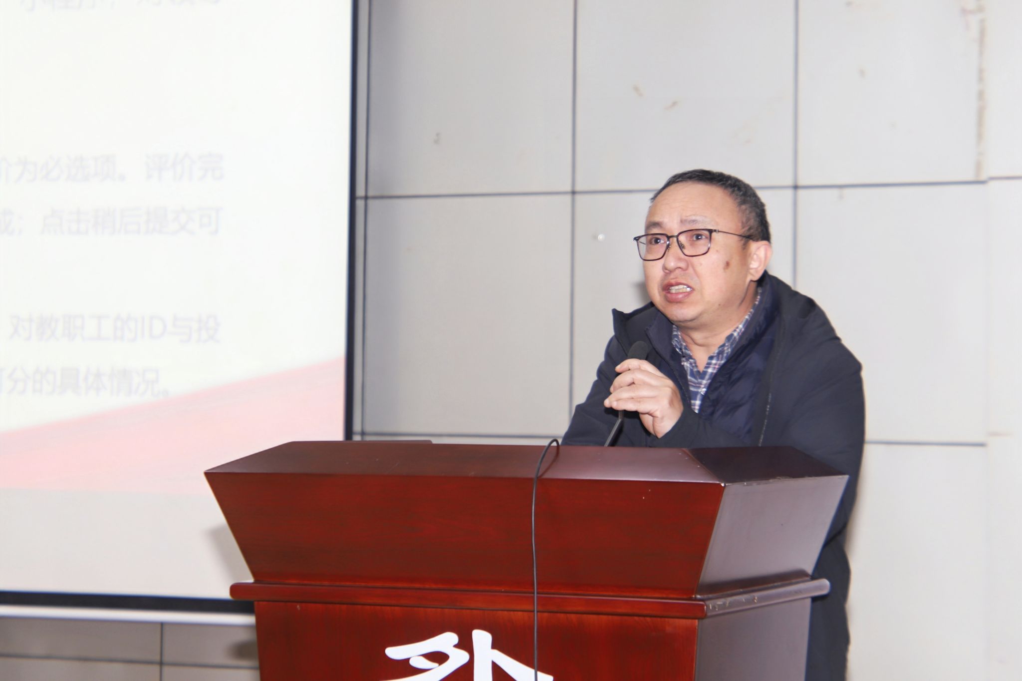 会议伊始,学校人事处副处长孟繁琦就本次干部考核工作作详细说明。他指出,干部考核是落实中央和学校有关工作要求、加强干部队伍建设的重要抓手,重点考察领导班子和领导干部在政治建设、履职尽责、工作实绩和廉洁自律等方面的实际表现,要求学院教职工认真听取述职内容,结合日常工作实际,客观、审慎地参与民主测评。