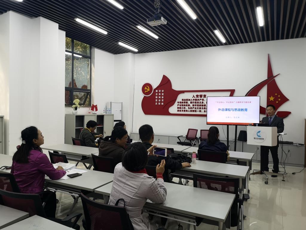 外语专业教工支部在外语学院楼105室开展了组织生活,学院党委委员、副院长范定洪给支部全体成员讲了专题党课——“外语课程与思政教育”,会议由支委李良炎老师主持。
