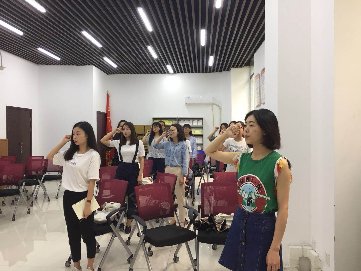 本次会议主要分为四个流程:首先,在付琪琦同志的带领下全体参会人员重温了入党誓词。在这一过程中,全体参会人员严肃而庄重,全体起立,举起右手:“我志愿加入中国共产党,拥护党的纲领,遵守党的章程,履行党员义务……”,整齐而认真的声音填满了整个会议室,也填满了我们每个人的内心。