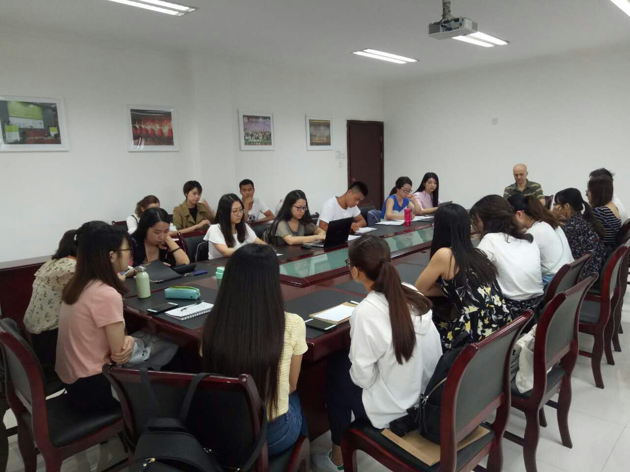 翻译硕士党支部全体党员和三名入党积极分子在外语学院楼419会议室召开以学习“习近平总书记在省部级主要领导干部专题研讨班上的重要讲话精神”为主题的党支部会议。