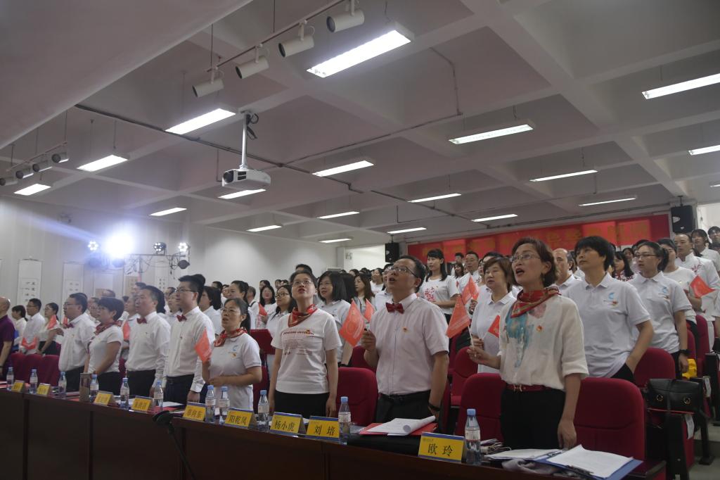 楼二楼多功能厅举行了“永远跟党走——献礼建党百年,红色经典诵读”活动。全院近200名师生党员用中英日德法俄六语种朗诵了《共产党宣言》、《长征》、《习近平谈治国理政》等作品。