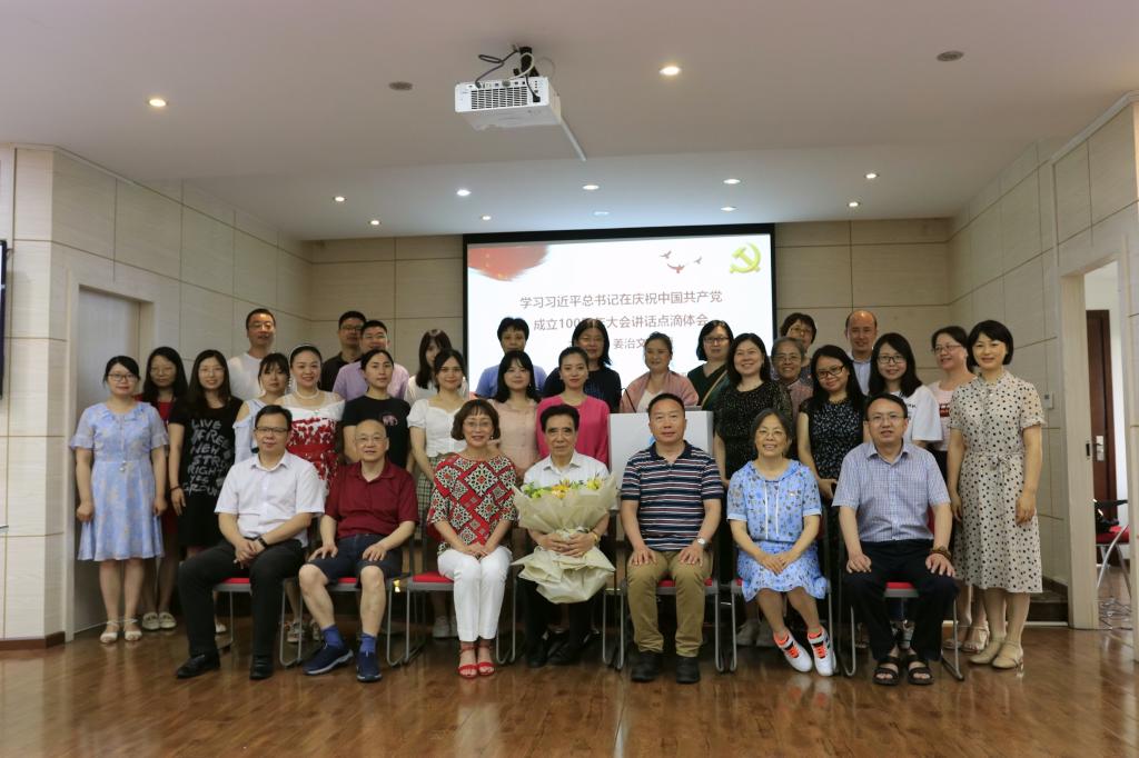党委邀请学院老院长、退休老党员姜治文教授到学院讲党课。外语专业教工党支部、行政教工党支部及部分教工支部支委共同听取姜治文教授题为“学习习近平总书记在庆祝中国共产党成立100周年大会讲话点滴体会”的专题报告,会议由小黄书