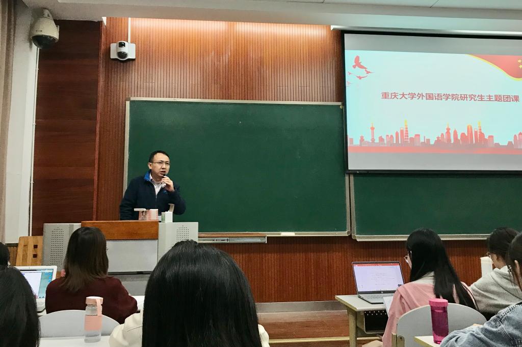 研究生分团委在虎溪校区第一教学楼D1142开展了研究生主题团课学习活动。学院党委副书记魏世平、正科级组织员刘培、研究生辅导员覃梦秋老师出席了本次活动,学院40余名研究生参与了本次学习。