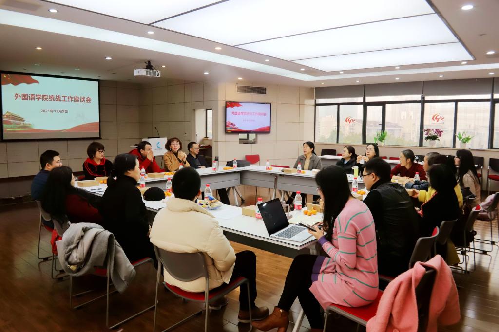 党委在外语学院楼501会议室召开了2021年统战工作座谈会。会议由学院党委书记欧玲主持,学院党委委员,民主党派、无党派及少数民族教职工代表参加了会议。