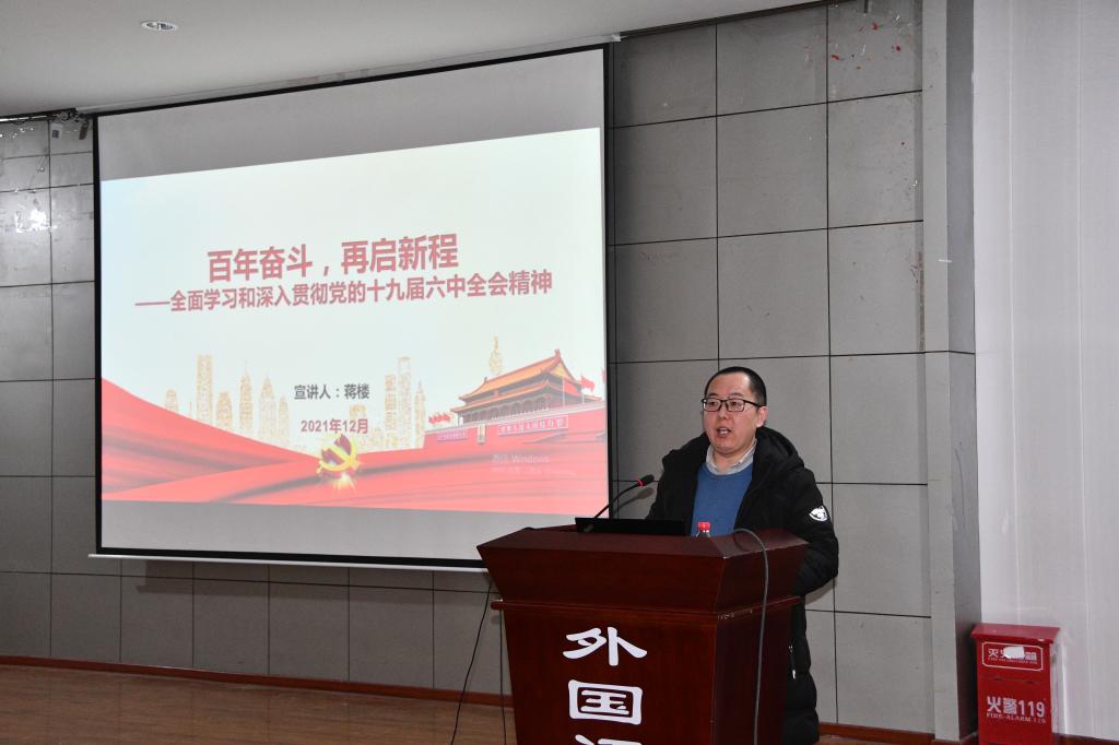 在学院楼二楼多功能厅举行了党的十九届六中全会精神宣讲会,马克思主义学院宣讲团成员蒋楼博士应邀到小黄书