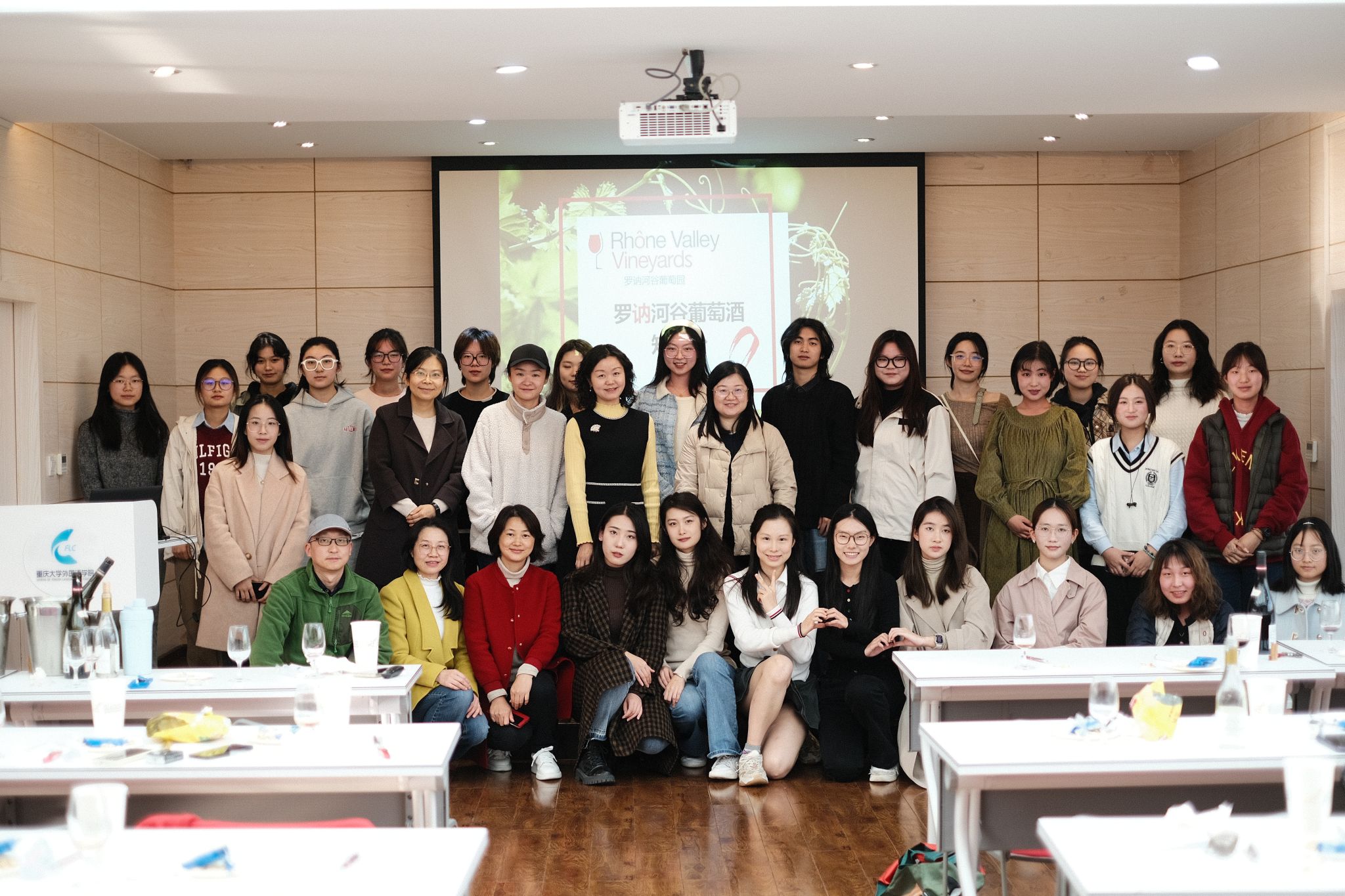 本次讲座内容分为三个部分:法国罗讷河谷葡萄酒历史和文化、红白葡萄酒和加强酒的品鉴和风格描述、餐酒搭配。现场有6款芳香的葡萄酒品鉴;工会准备了奶酪和饼干搭配小食;孙莺老师带了萃取了香气的酒鼻子做闻香训练,并带领大家描述葡萄酒的风格和品评葡萄酒的质量。师生们兴趣盎然,气氛轻松活跃。