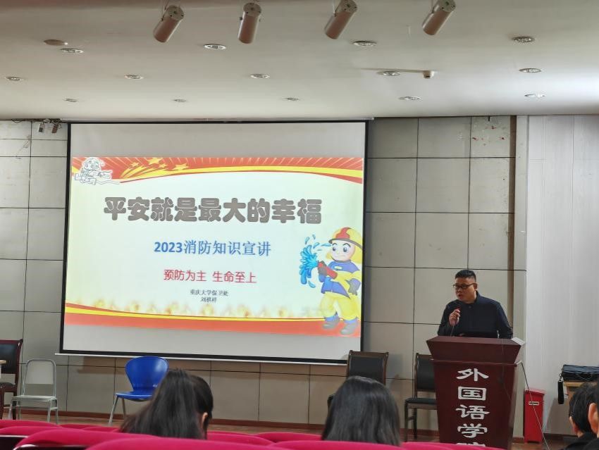 刘老师以介绍火灾的定义为开端,通过近几年的火灾真实案例,向全体师生介绍了火灾的危害。同时介绍了校内包括宿舍、消防通道、图书馆等重点防火区域的消防安全要求,违规使用电器的风险。提出学院全体师生在日常工作、学习生活中要注意用火用电安全,禁止将电瓶带回寝室充电、禁止占用消防救援车道等要求。