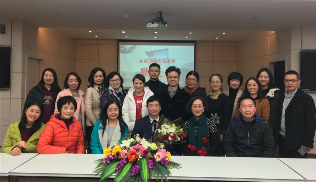 楼501会议室,英语系举行了林夏副教授的退休欢送茶话会。学院领导欧玲书记、彭静院长、范定洪副院长、杨小虎副院长,工会主席王道坤副教授出席了茶话会,同时出席的还有英语系全体教师以及林老师的部分老朋友,英语系2015级和2014级部分学生也来到现场。林老师宣读了自己的退休感言,总结了自己几十年的教学生涯,表达了对工作岗位深深的热爱,对学院、同事、学生的感谢。茶话会师生欢聚一堂,共叙林老师教学生涯中的点点滴滴,现场气氛热情洋溢,欢乐俏皮,温馨感人,林老师的学生和同事们都精心制作了视频和明信片等小礼物,表达对林老师最真挚的感谢和祝福。最后欧玲书记代表学院发言,感谢林老师几十年对教学工作兢兢业业,对学院工会工作的支持和贡献,并送上小礼物,祝林老师退休生活愉快。