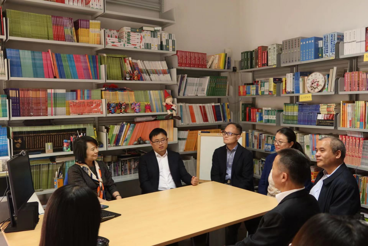 4月30日上午,访问团抵达意大利比萨孔子学院。吴雪燕院长及孔子学院全体教师热情接待了莫启扬院长一行,双方进行了亲切友好的交谈。