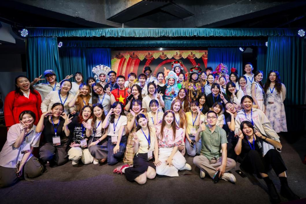 (25日,国际学生在南普剧场与表演团队合影)
