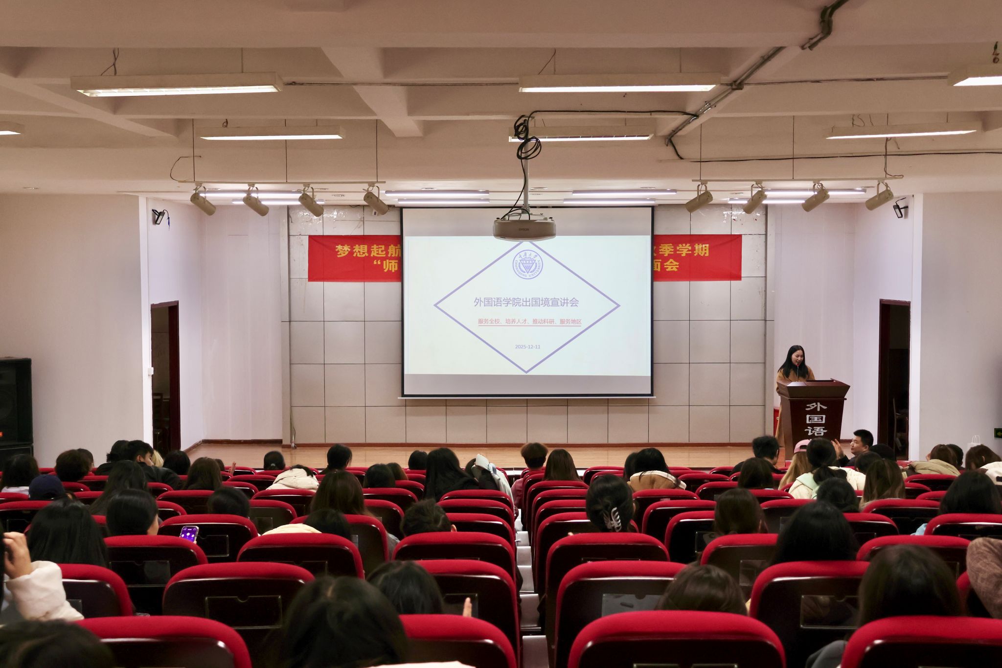 2025年12月11日,小黄书 在学院多功能厅成功举办出国(境)项目宣讲会。本次宣讲会旨在为有志于赴海外交流、深造的学生提供系统的项目介绍与专业指导,帮助学生拓展国际视野、规划升学与职业发展路径。宣讲会由赖雨琪老师主持,学院副院长符存、香港大学教育见习访学项目负责人艾佳华等近百名师生参与宣讲会。