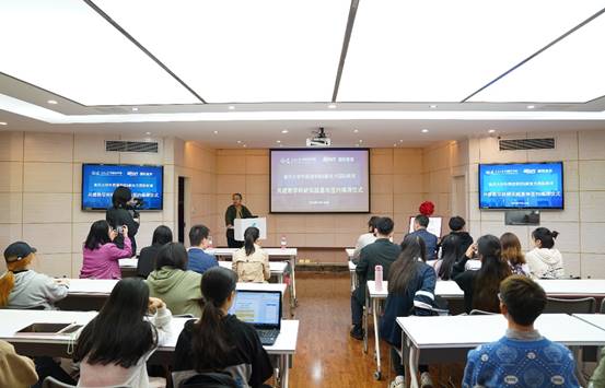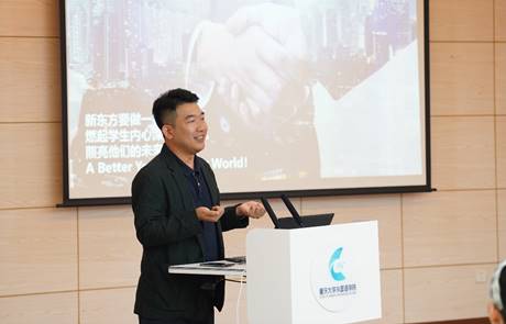 签约揭牌仪式后,重庆新东方国际教育运营总监姜波先生就重庆新东方国际教育业务板块及高校合作案例展开介绍。姜总监详述了新东方集团教育业务矩阵,讲解了新东方的高校人才培养与发展建设合作模式,并针对新东方实习相关事宜为现场学生进行介绍和答疑。