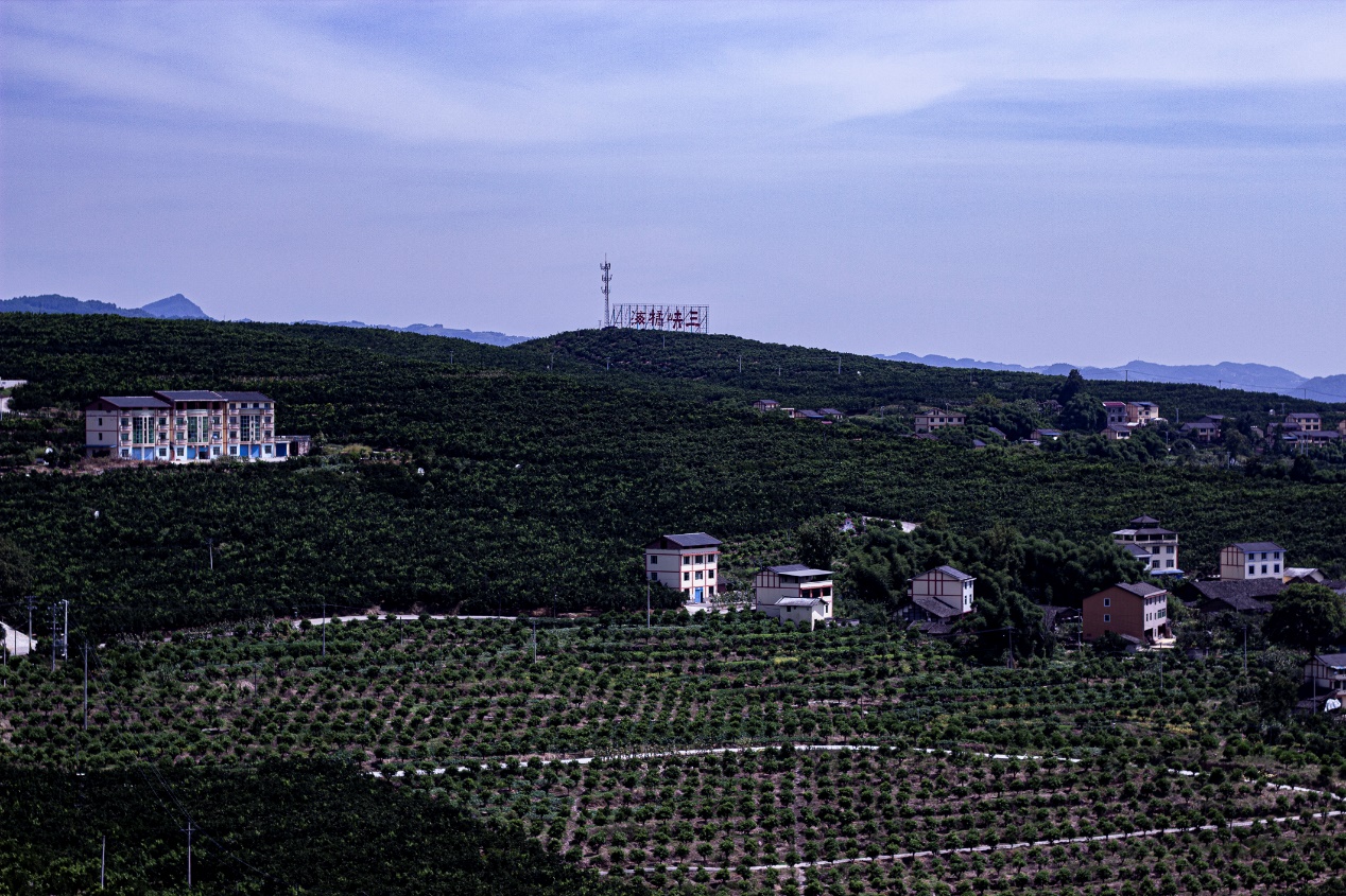 实践团成员登上“三峡橘海”景区最高点所建有的一座仿古建筑的观景台,纵观景区全貌。“三峡橘海”景区是长江边的一个大型孤岛,主体景观是万亩柑橘果园。该橘海是忠县将“新农村建设”和乡村旅游发展相结合创出的示范区,是忠县50万亩优质柑橘产业化项目的重要组成部分。近年来,“三峡橘海”景区积极配合忠县举办柑橘文化艺术节,大力发展乡村农家乐,挖掘地域特色,开发突出忠县文化特色的旅游商品,加强宣传生态游和田园风光游,推动农业休闲生态旅游产业的可持续发展。
